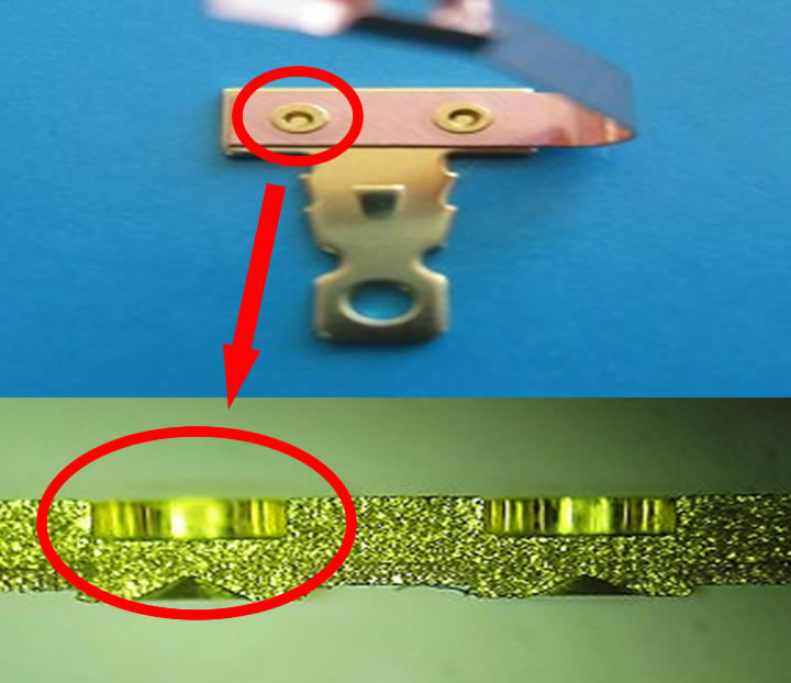 鉚合就是把兩種以上的材料接合到一起的加工方法。即對(duì)于不能用焊接和粘合劑的材質(zhì),用鉚合的方式把其連接以及焊接和粘合方法的轉(zhuǎn)換,適用于提高生產(chǎn)效率。